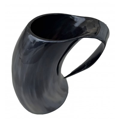Tassa de banya natural de búfal aquàtic. Perfectament polida. És un autèntic complement per a vestits medievals. És un element decoratiu. No utilitzar-lo com a recipient per beure. Totes les banyes tenen un color i un patró diferents. Les banyes són dorigen ètic. També disponible en dues mides més grans (ST520 i ST521).