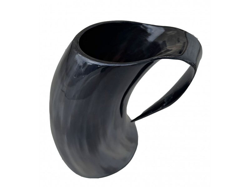 Becher aus natürlichem Wasserbüffelhorn. Perfekt poliert. Er ist eine authentische Ergänzung zur mittelalterlichen Tracht. Er dient zur Dekoration. Nicht als Trinkgefäß verwenden. Alle Hörner unterscheiden sich in Farbe und Muster. Die Hörner stammen aus ethischer Gewinnung. Auch in zwei größeren Größen erhältlich (ST520, ST521).