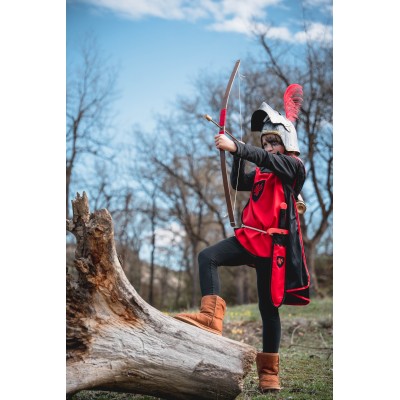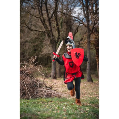 Medieval knight tabard made of polyester, ribbon edging and felt collar, very comfortable to wear. Shield with embroidered dragon. It is part of the Kamelot red collection. Available in 3 sizes. Aproximate ages: S 3/4 years old - M 5/8 years old - L 9/12 years old.