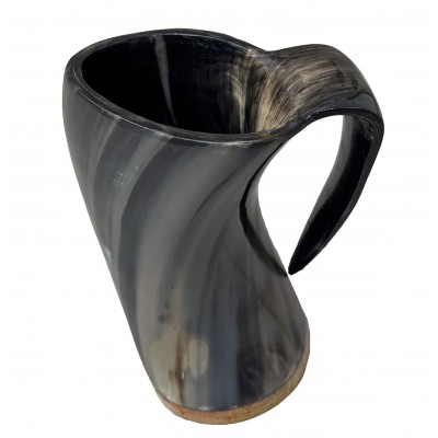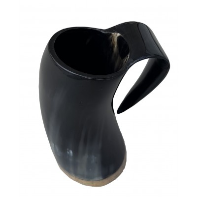 Taza hecha de cuerno natural de búfalo de agua. Perfectamente pulida. Es un auténtico complemento para el traje medieval. Es un elemento decorativo. No se debe usar como recipiente para beber. Todos los cuernos tienen un color y un patrón diferentes. Los cuernos son de origen ético. También disponible en dos tamaños más pequeños (ST519 y ST520).