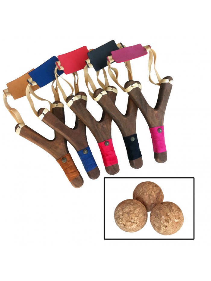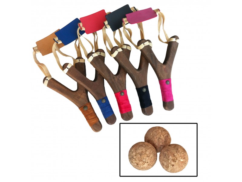 Tirachinas de madera de haya muy resistente con mango recubierto de serraje de color muy agradable al tacto. Se suministra con 3 bolas de corcho de seguridad. Este producto no es un juguete y hay que utilizarlo con los proyectiles de corcho suministrados y bajo la supervisión de un adulto. 5 colores disponibles a escoger.