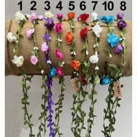 Corona artesanal hecha con flores de papel, pip berry y alambre fino recubierto con cinta adhesiva verde. Lleva una cinta de hojas de olivo para dar elegancia. La corona se ajusta perfectamente a la cabeza gracias a la buena flexibilidad del alambre. Se venden surtidas de varios colores. 9 colores disponibles a escoger.