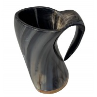 Taza de cuerno natural de búfalo de agua. Pefectamente pulida. Es un auténtico complemento para trajes medievales. Es un elemento decorativo. No utilitzarlo como recipiente para beber. Todos los cuernos tienen un color y un patrón diferentes. Los cuernos son de origen ético. También disponible en dos tamaños más grandes (ST520 y ST521).